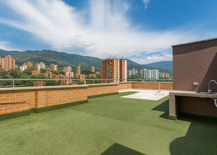 Die Ferienwohnung Edificio La Frontera - Vista El Poblado Free Parking & Wifi Recep 24 H Medellín in Medellín befindet sich etwa 6 Fußminuten vom Einkaufszentrum La Frontera und ca. 2 Kilometer vom El Castillo Museum und den Gärten entfernt.